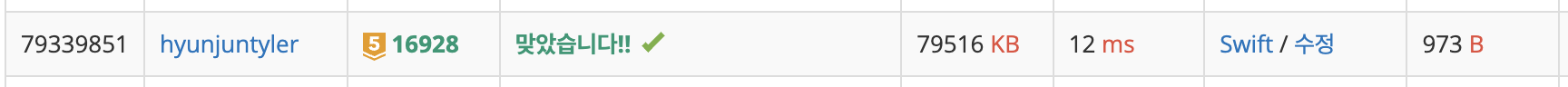 | [Algorithm] 백준 - 1062번 가르침 (Swift) (1) | 2024.06.06 |