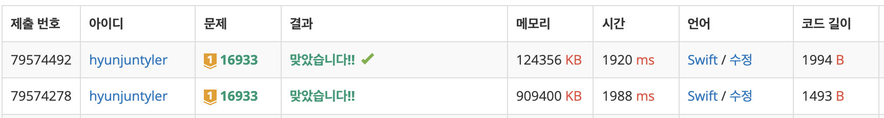 | [Algorithm] 백준 - 16954번 움직이는 미로 탈출 (Swift) (1) | 2024.06.14 |