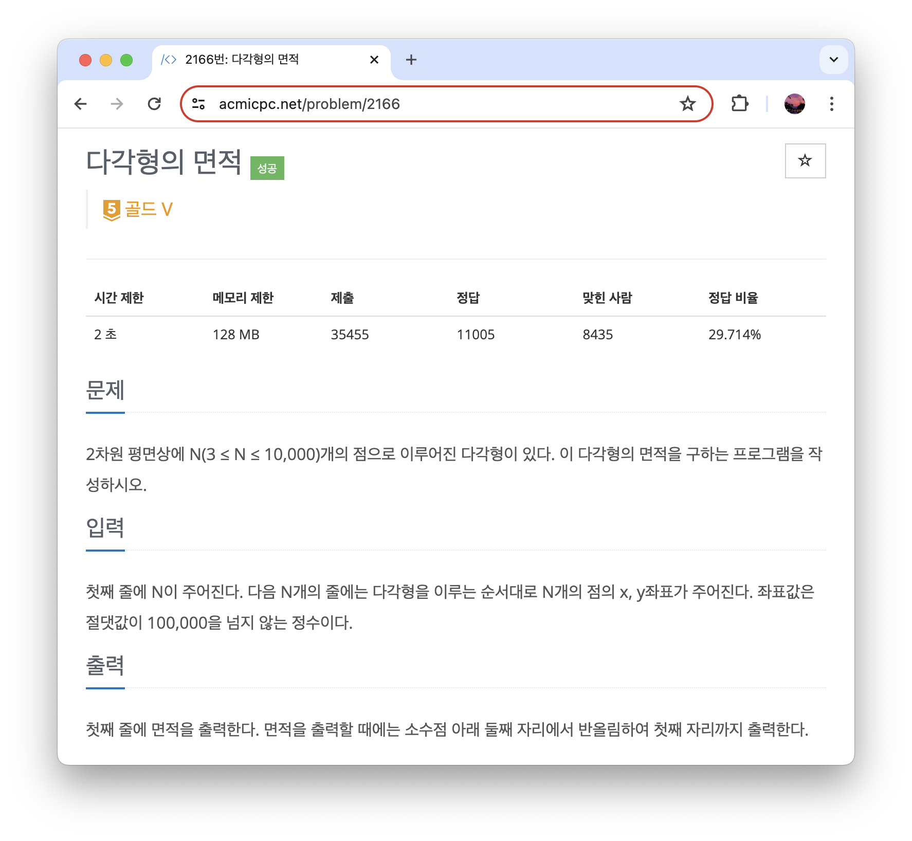 다각형의 면적을 구하는 문제이다.