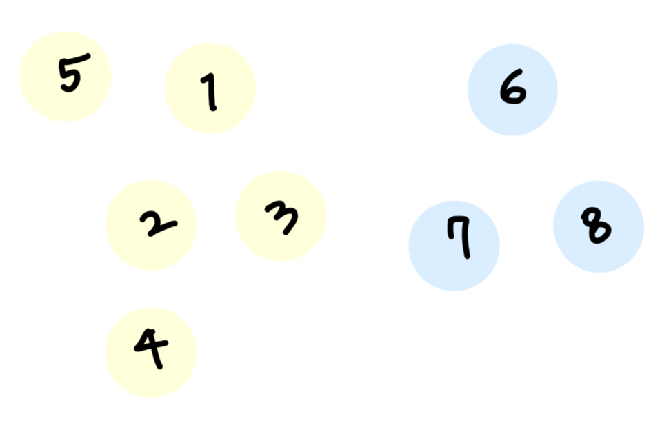 예를 들면 아래와 같이 연결 배열이 나오게 된다면 아래와 같이 두 그룹으로 나눌 수 있게 된다.