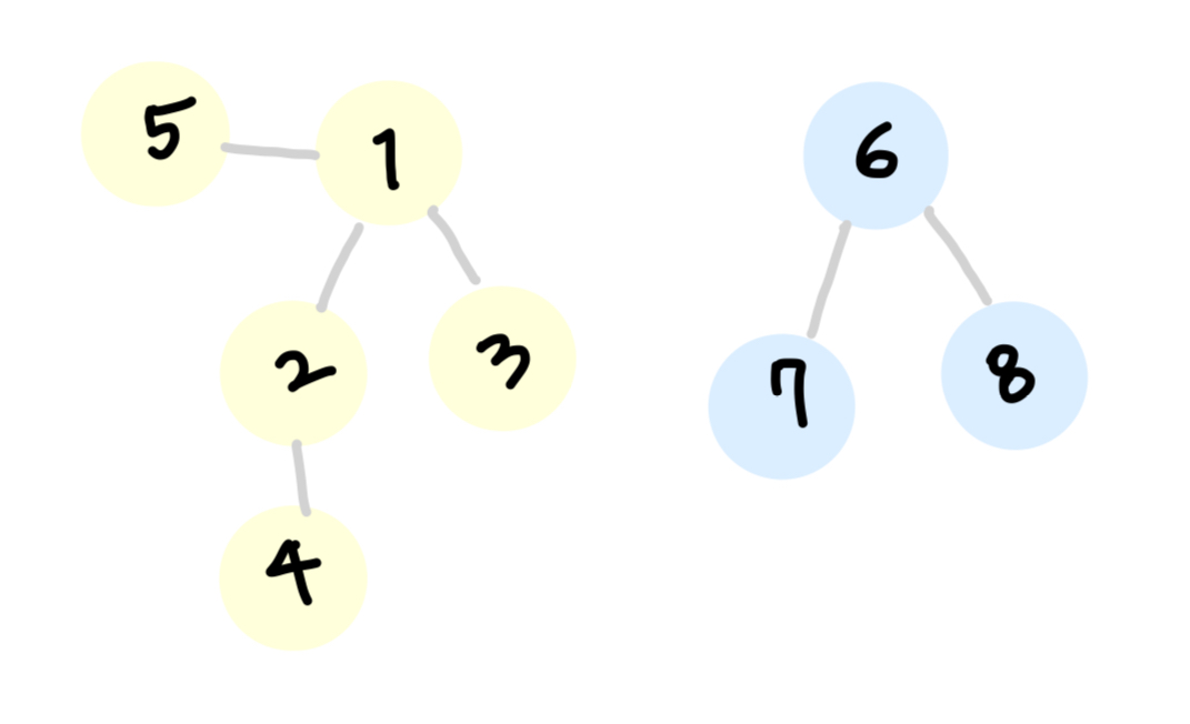 서로소 집합(Disjoint Set)을 효율적으로 관리하는 알고리즘이다. 아래의 두 그래프는 서로소인 집합이라고 볼 수 있다. 아래의 그래프가 주어진다면 1과 6은 같은 그룹에 속해있는지 판별할 수 있는지, 어떻게 주어진 자료로 아래의 그룹을 만들지 결정하는 알고리즘이다.