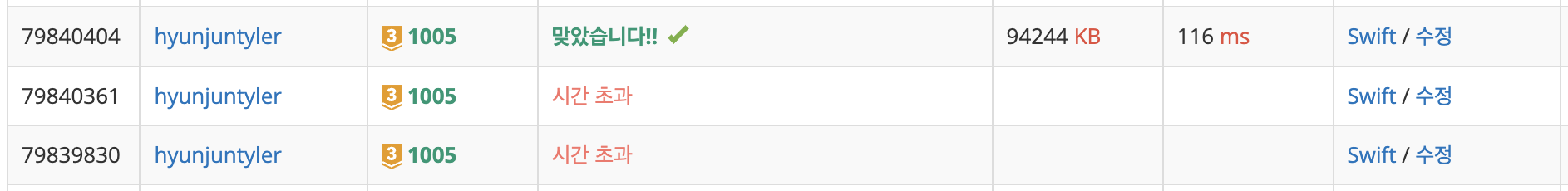 나에게 Swift 로 알고리즘을 푸는 것에 대한 깊은 고통...을 안겨준 문제이다... 이유는 문제 푸는 방법은 맞았지만... Swift 에서 입력량이 많은 경우 시간초과가 빈번하게 발생하기 때문에 최대한 방법을 찾았으나 결국 파일입력 코드를 사용해버렸다...!