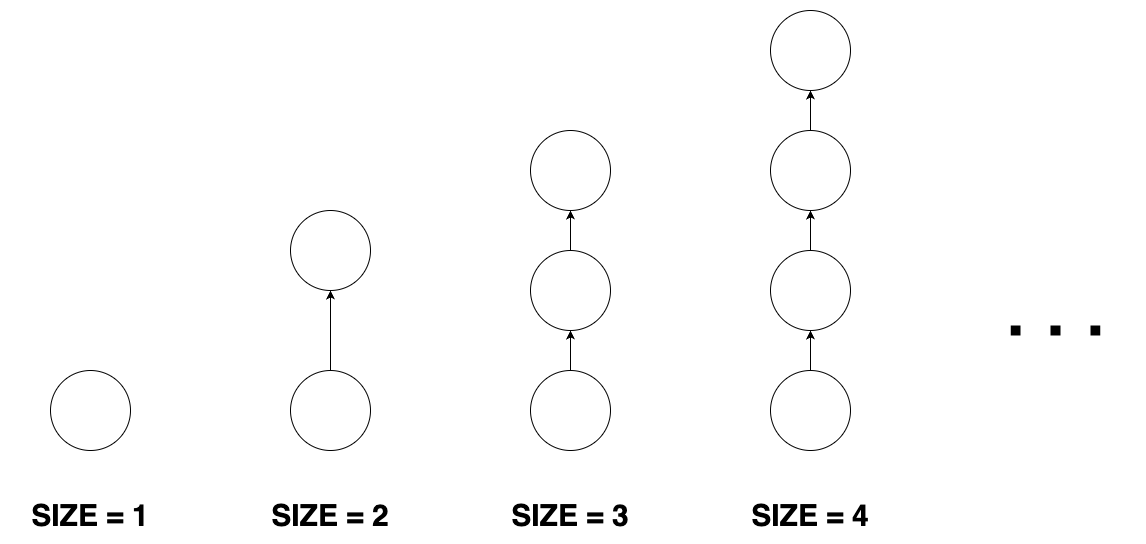 - 크기가 n인 막대 모양 그래프는 n개의 정점과 n-1개의 간선이 있습니다. 막대 모양 그래프는 임의의 한 정점에서 출발해 간선을 계속 따라가면 나머지 n-1개의 정점을 한 번씩 방문하게 되는 정점이 단 하나 존재합니다. 막대 모양 그래프의 형태는 다음과 같습니다.