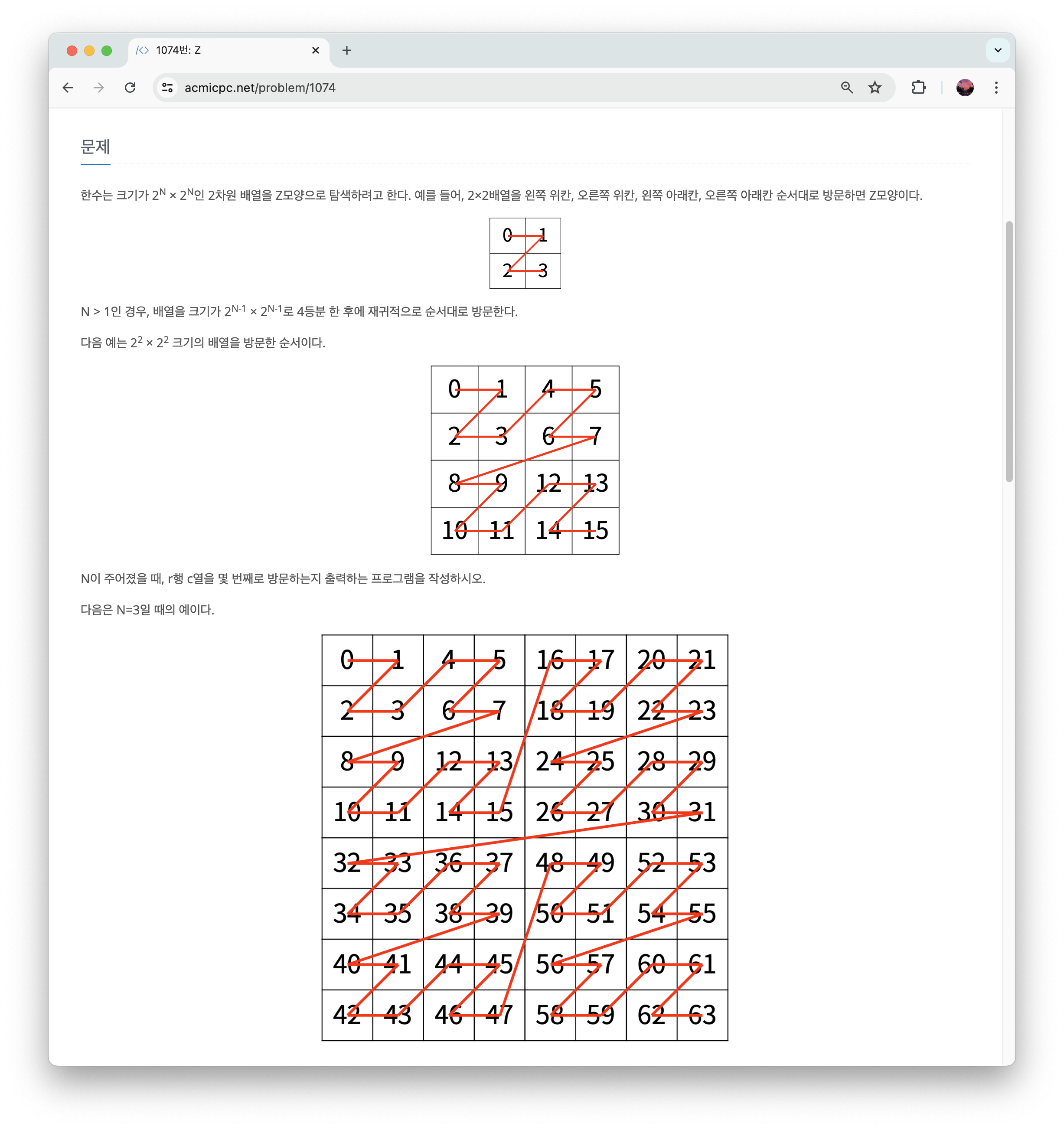월요일을 기념하며... 약간은 풀만한 문제(?)에 도전했다..! 문제에 친절하게도 재귀적으로 방문한다는 힌트가 있다! 🥸