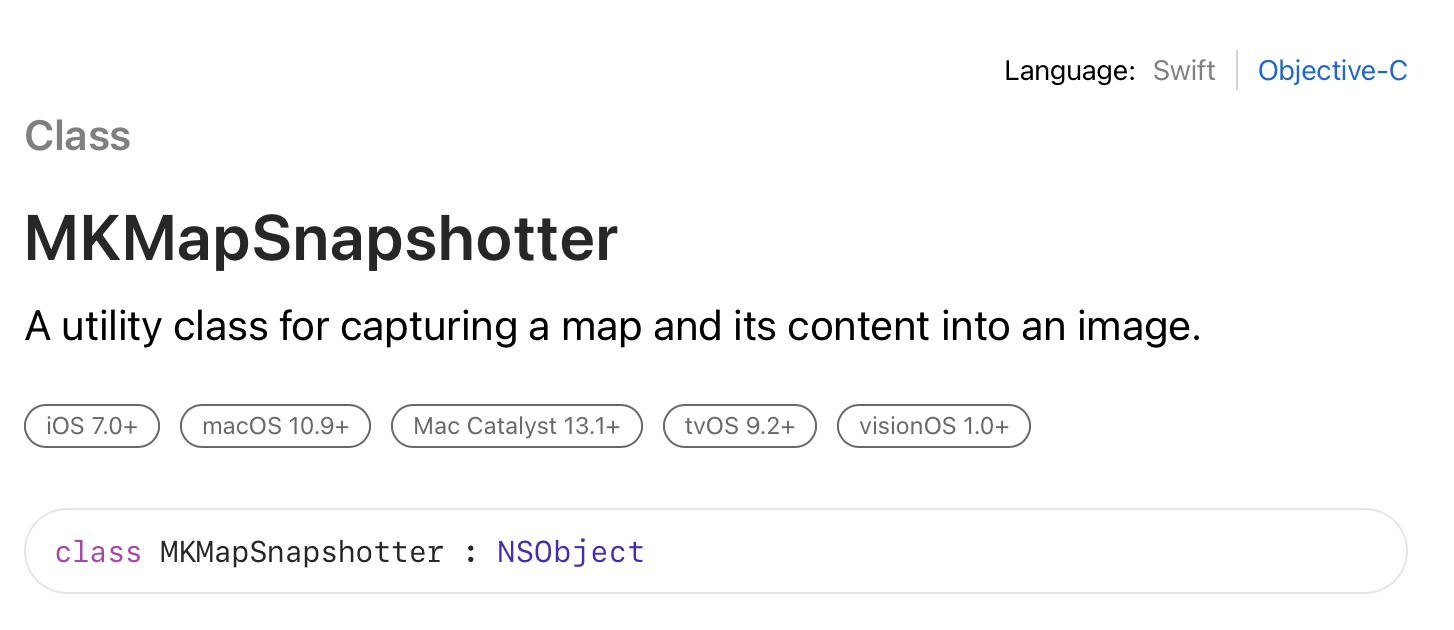 let snapshotter = MKMapSnapshotter(options: options)