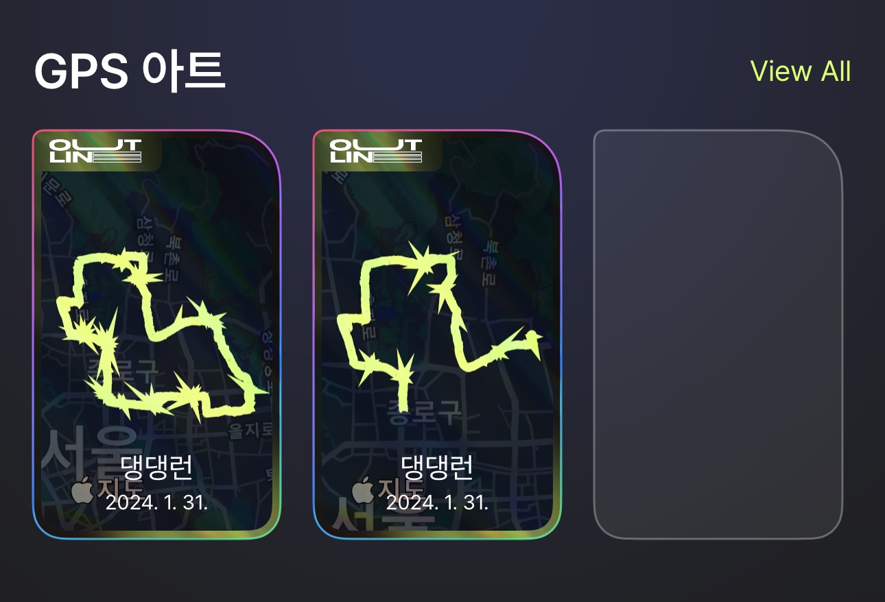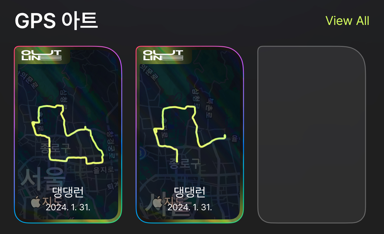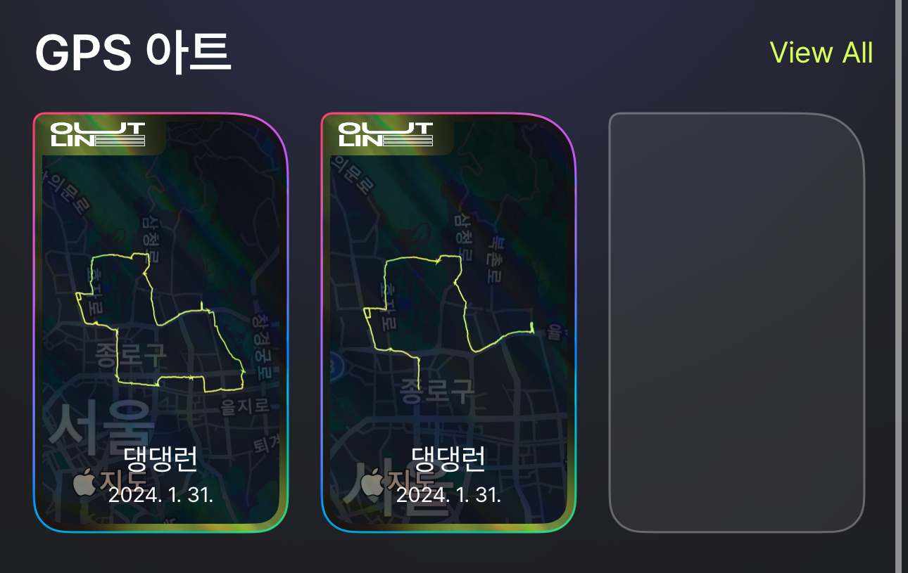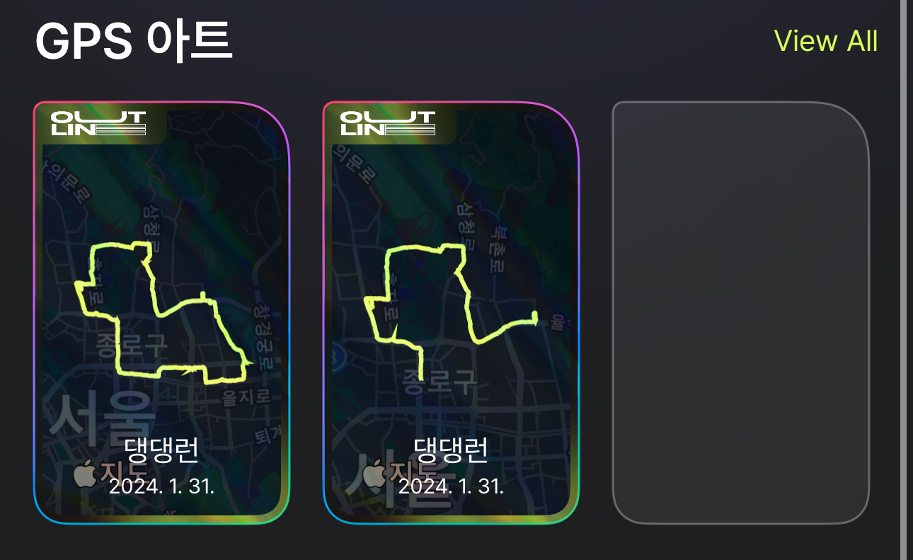 선을 얇게 해보니 경로의 문제가 아닌 약간의 노이즈를 굵은 선이 그리면서 나타나는 UI의 문제라는 것을 파악했다. 기존 가지고 있던 smoothLocations를 입력해 보았지만 해결이 되지 않는다. 아마 경로가 튀는 문제가 아닌 경로의 노이즈와 라인 두께의 상대적인 문제인 듯 했다.