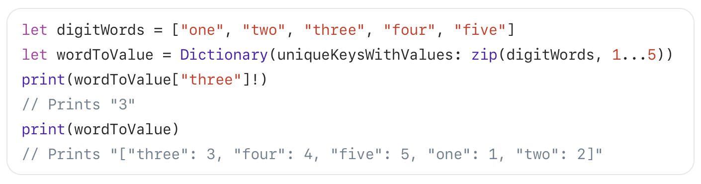 let dic = Dictionary(uniqueKeysWithValues: arr.enumerated().map { ($1, $0) })