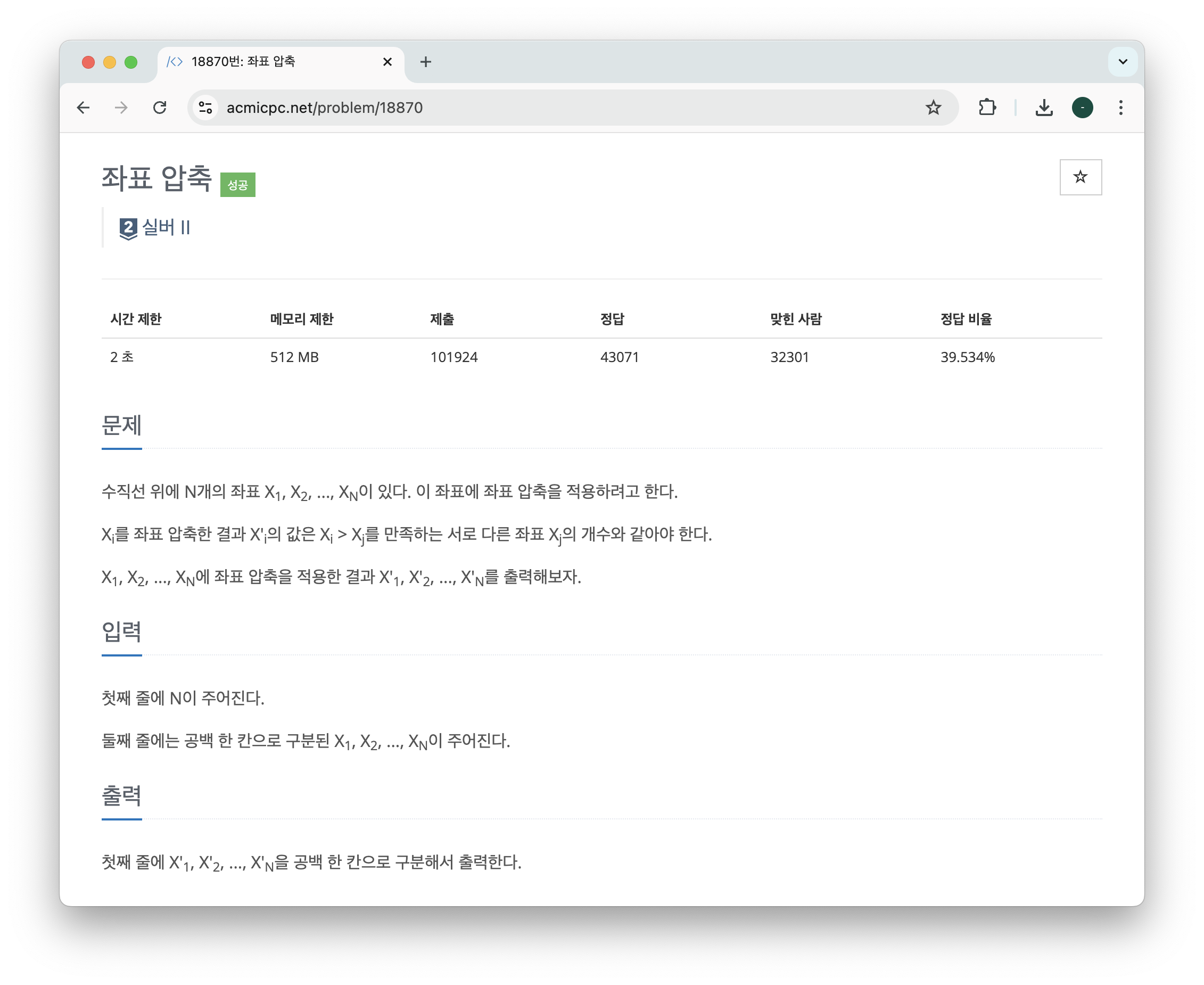 - 좌표를 오름차순으로 정렬하고, 중복되는 값을 제거해준다.