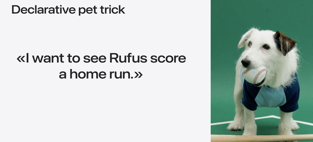 Rufus가 원하는 작업을 설명하고 준비되어있다면 아래와 같이 Rufus에게 홈런을 치라고 선언하면 된다. 선언형 프로그래밍의 장점은 원하는 결과에 좀더 집중할 수 있다는 점이다.