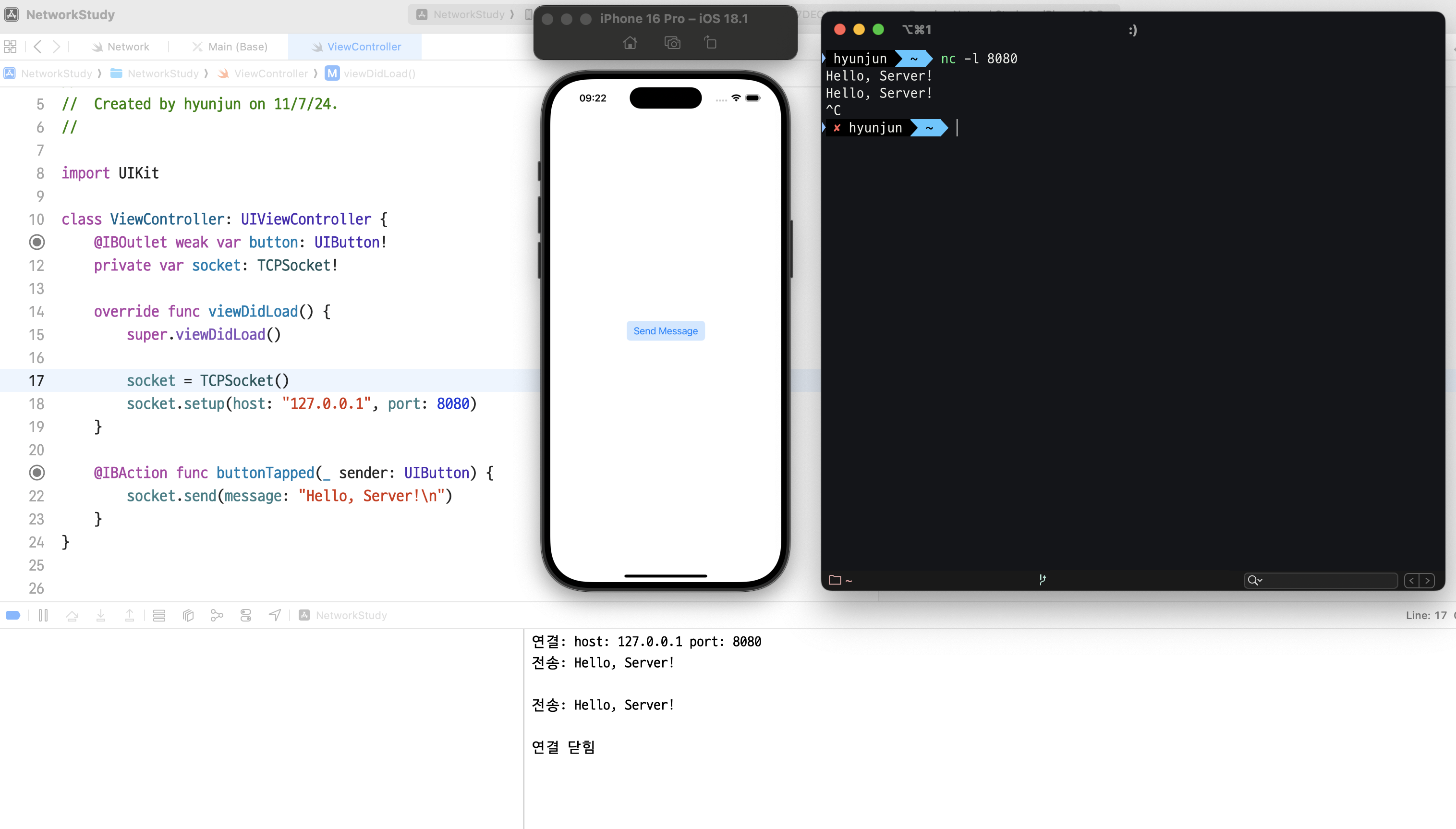 위의 작성한 코드가 잘 작동 할까? 라는 의문이 생겨 어떻게 테스트 해볼 수 있을까? 생각해봤다. 아래와 같이 아주 간단한 뷰를 만들어 테스트를 진행해 보았다. nc -l 8080 명령어를 통해 간단하게 로컬서버를 실행해 볼 수 있었다.