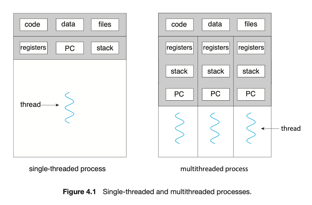 기존 전통적인 프로세스는 single-threaded process이였지만, 현대에 와서는 multithreaded process로 발전했다.