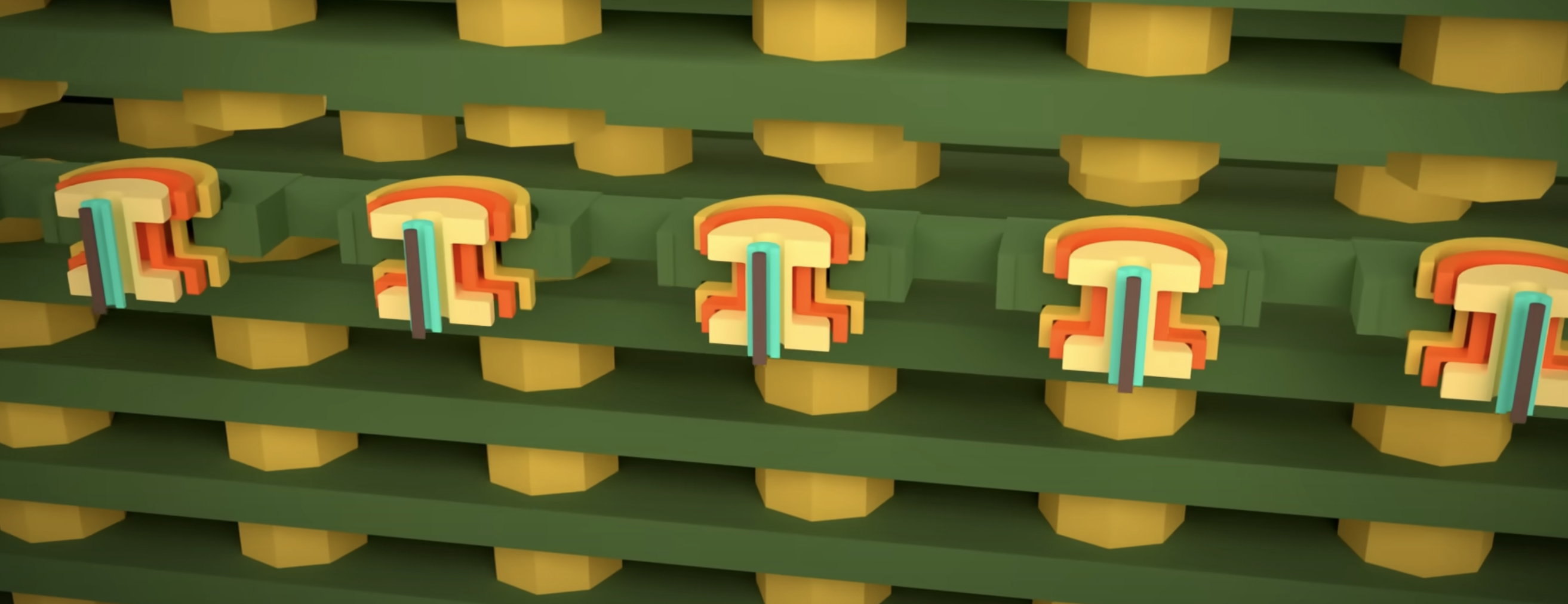 위에서 알아봤듯이 NAND 플래시 메모리는 이렇게 셀들이 직렬로 연결이 되어있다.