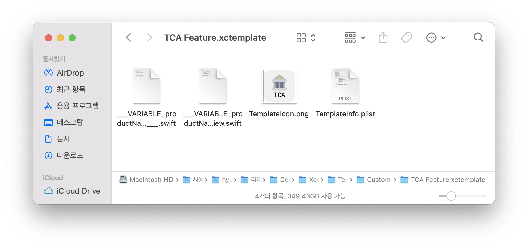 문득 TCA로 개발을 하려다가 TCA의 경우 특정한 템플릿이 존재한다는 것을 알게 되었고, 이것을 Xcode로 빠르게 만들 수 없을까? 하는 생각에서 템플릿을 적용해 보기로 했다.