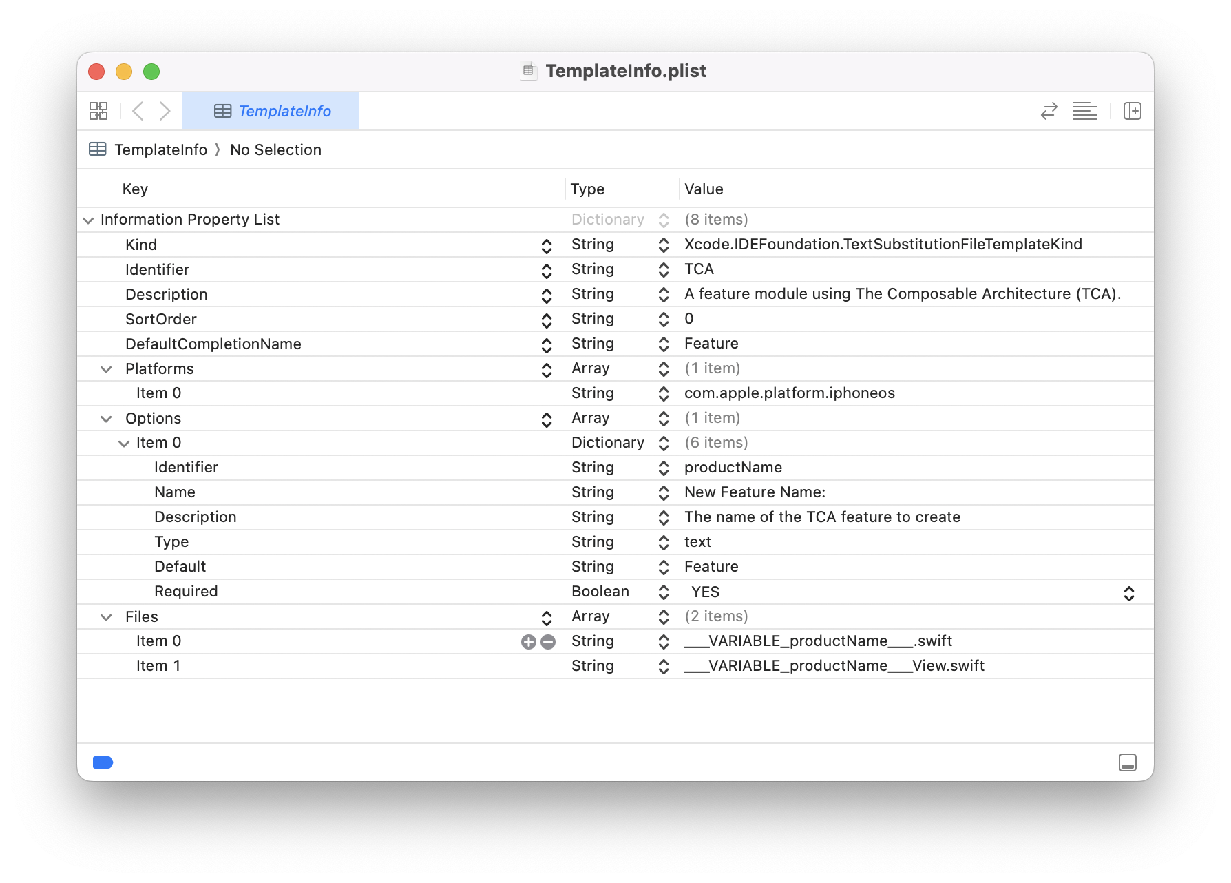 살짝 골치가 아팠던 부분은 아래와 같은 TemplateInfo.plist 파일이었다...! 😭