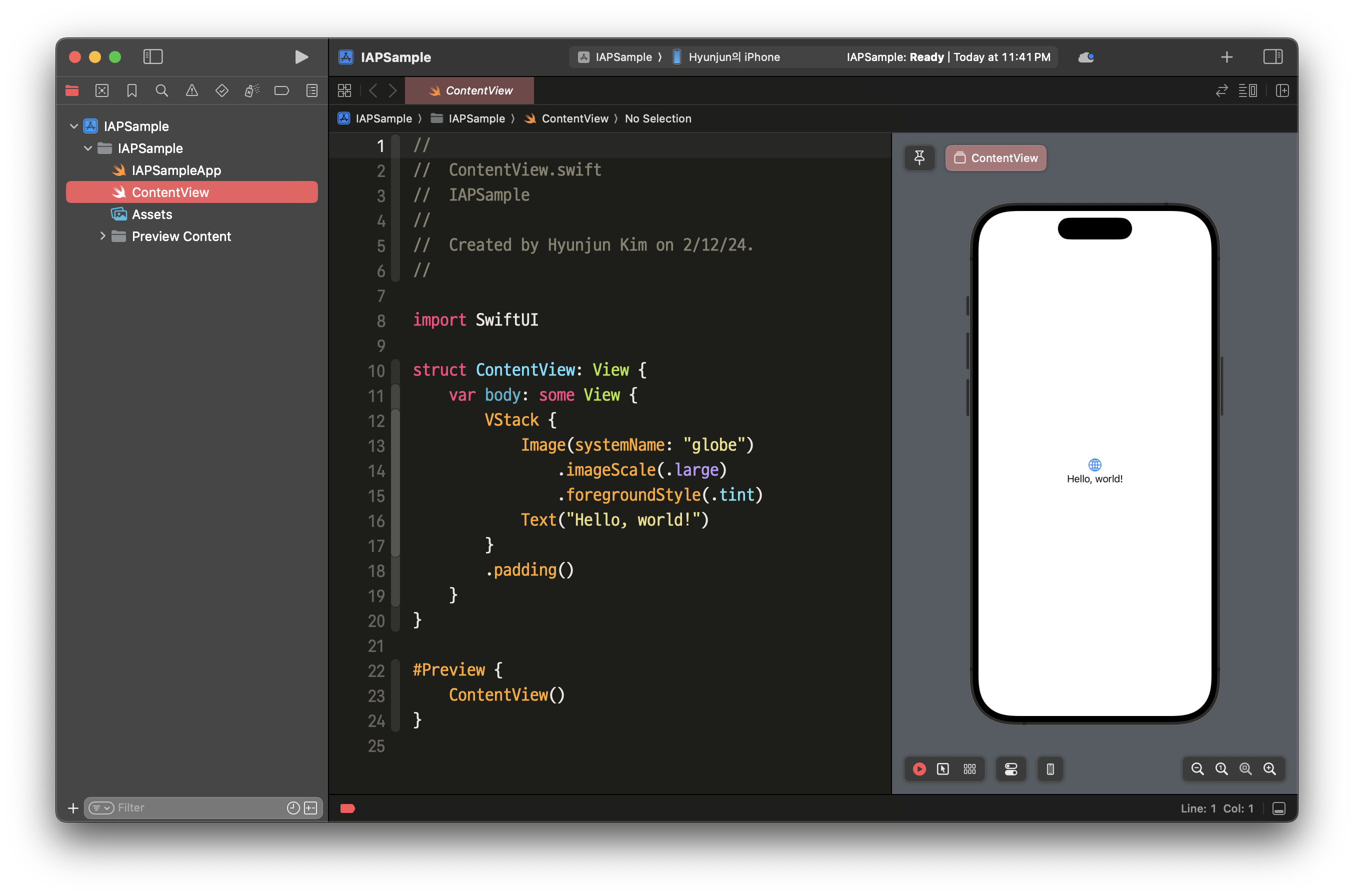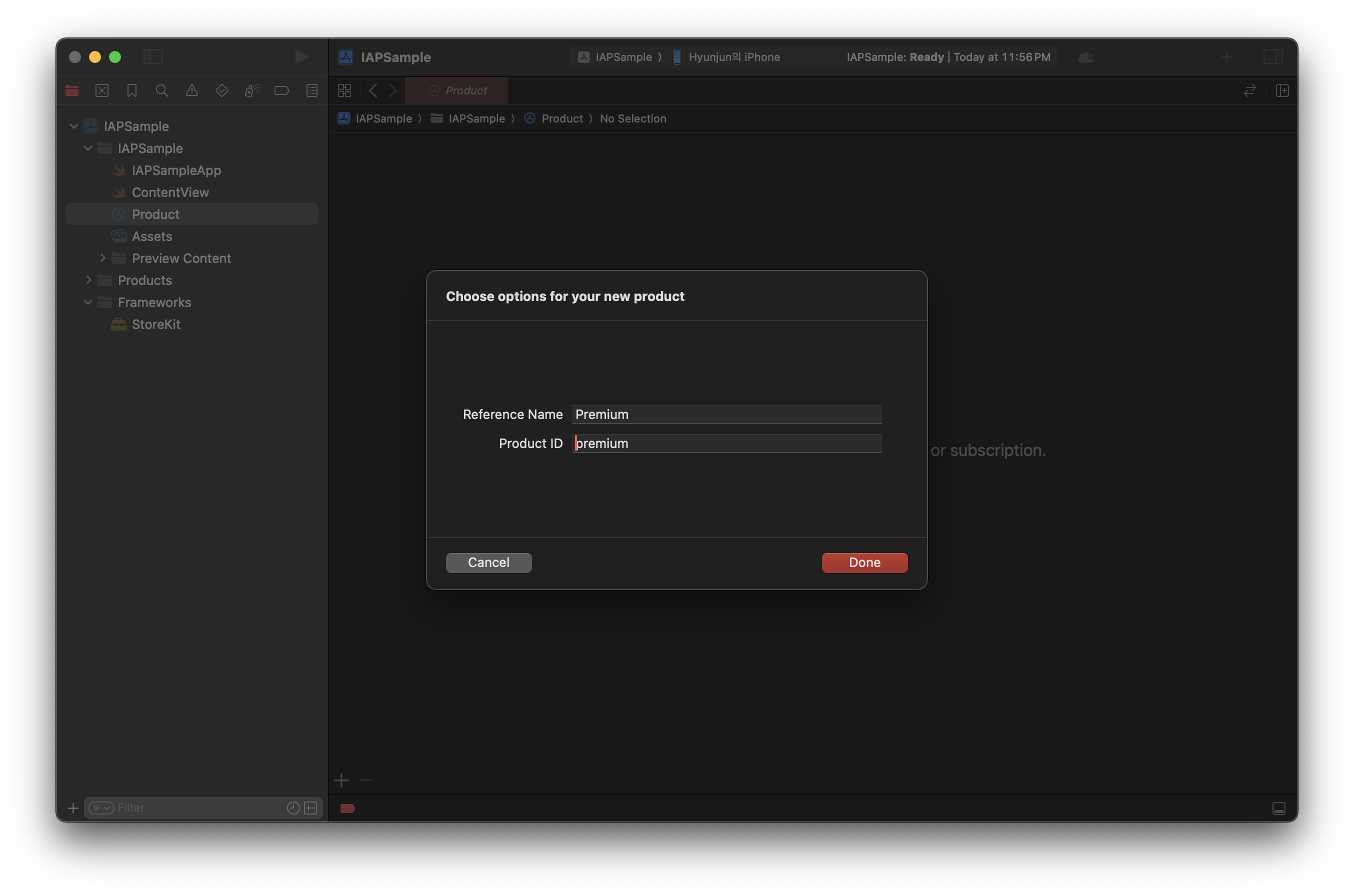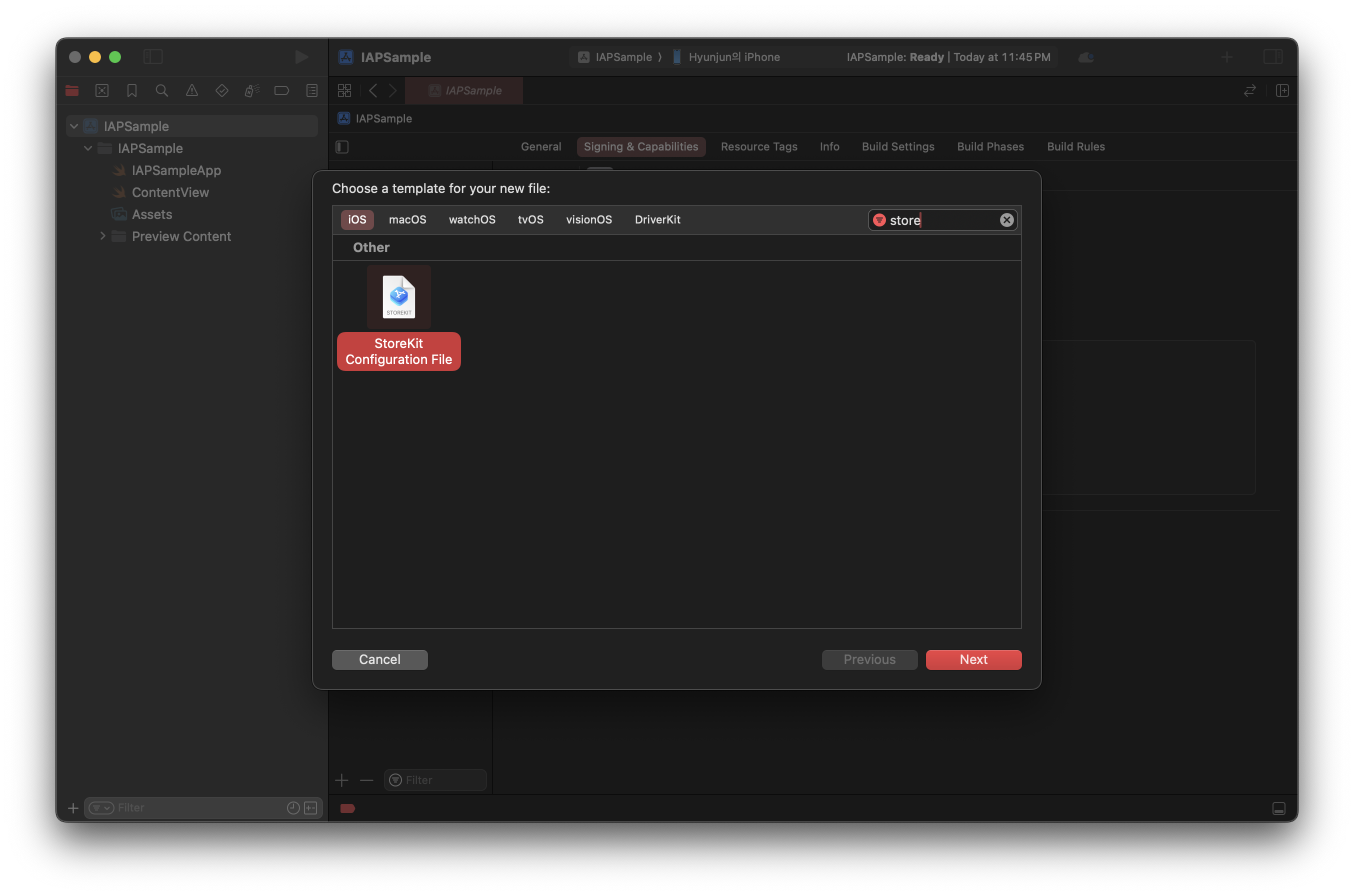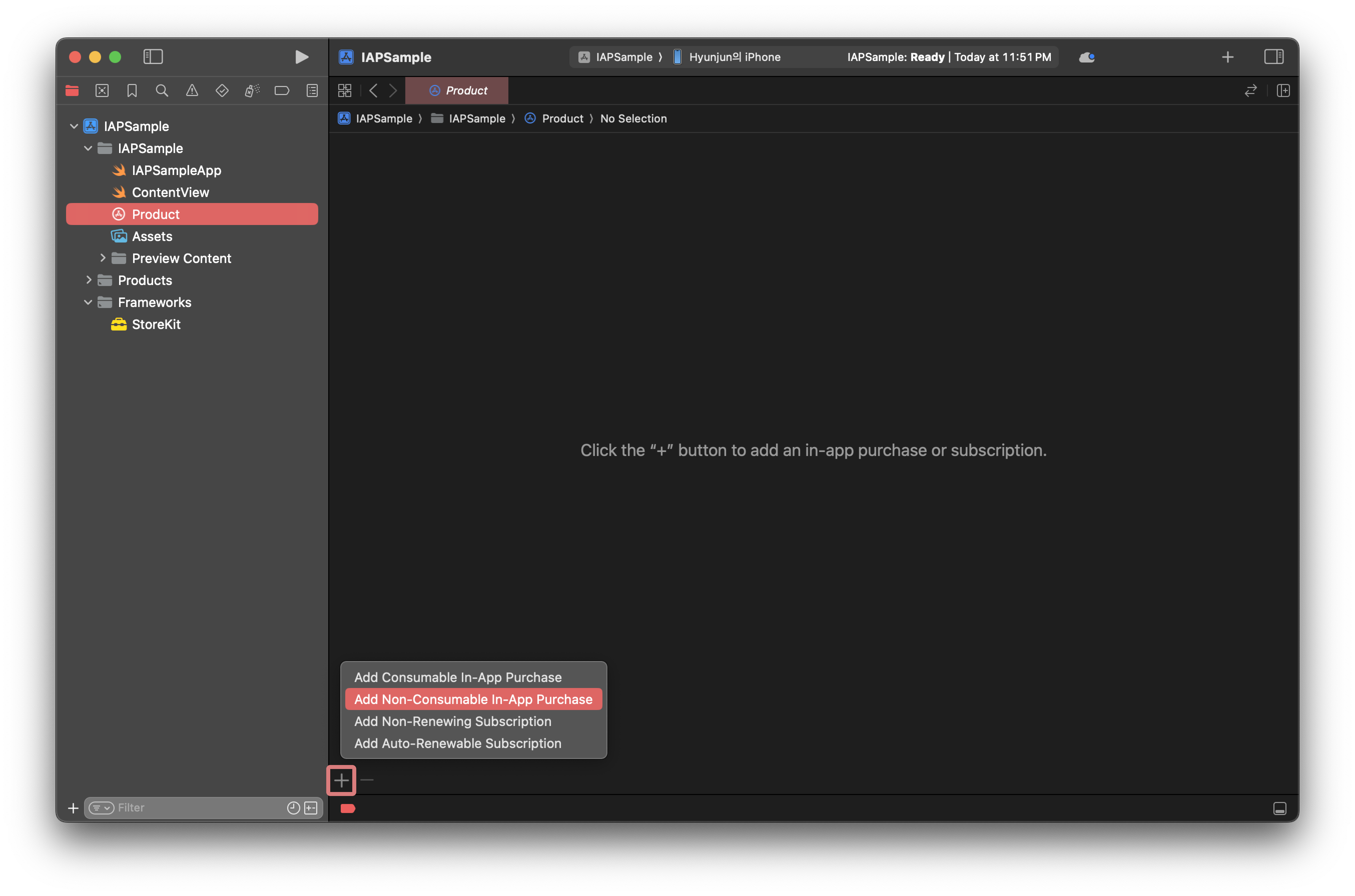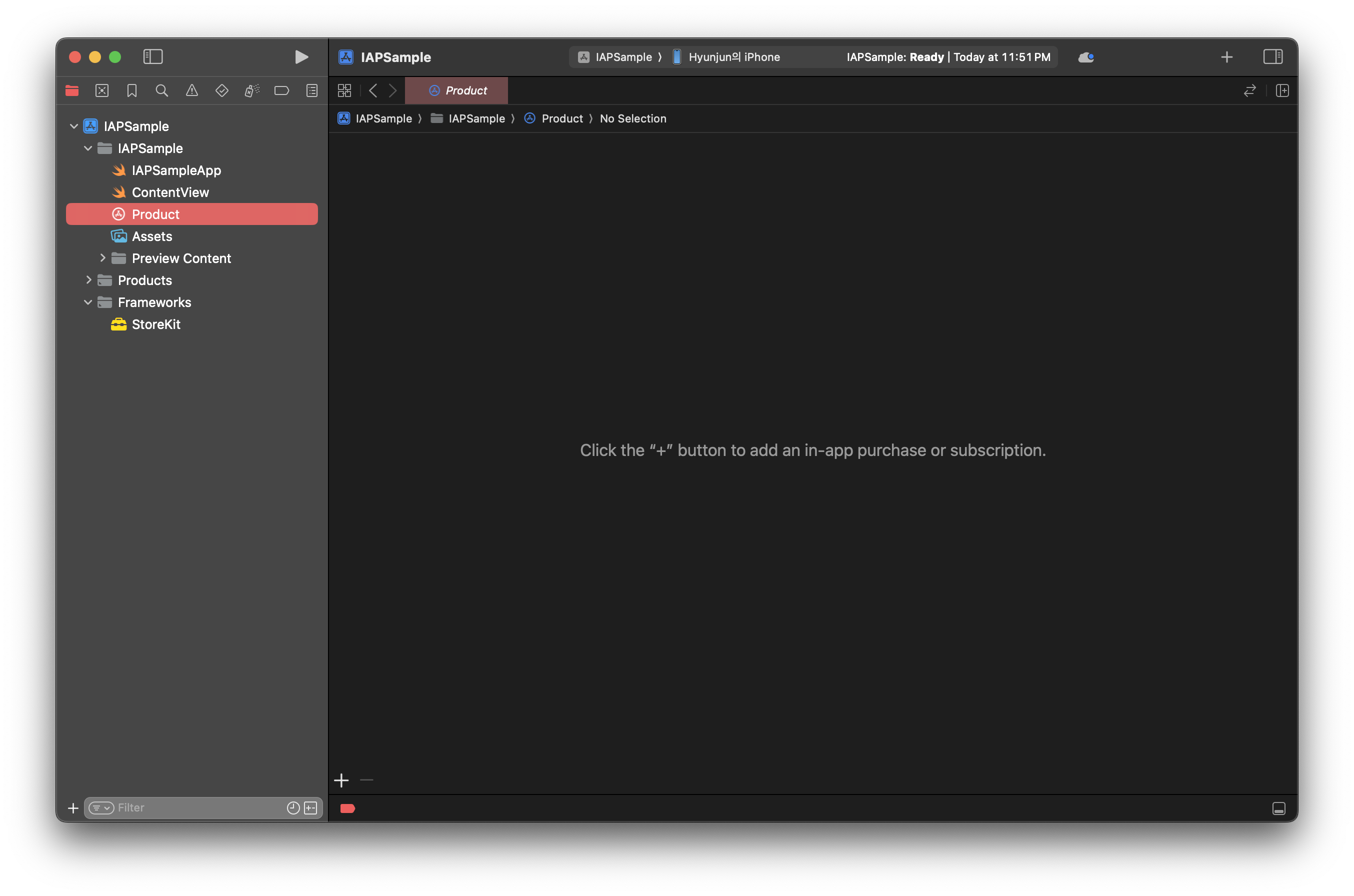 우선 나는 간단하게 프로젝트 IAPSample 이라는 앱을 만들었다.
