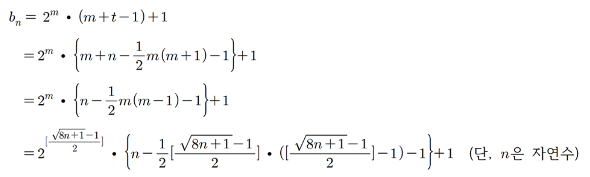 이 식은 정말 놀랍게도 점화식을 알게 된다면 아주 간단하게 해결이 가능하다.