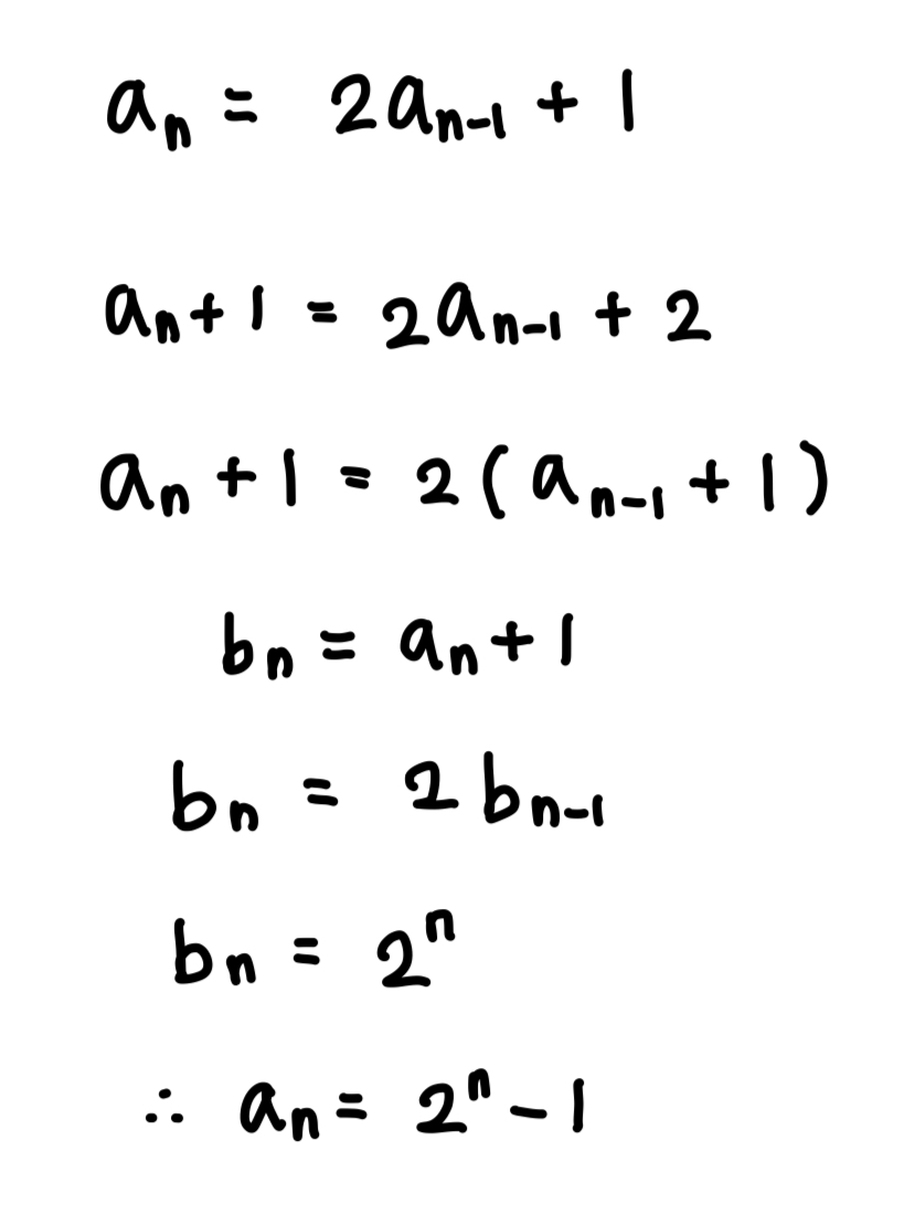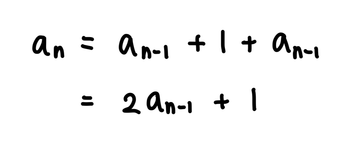 이 점화식을 통해서 하노이의 탑의 일반항은 아래와 같이 구할 수 있다.