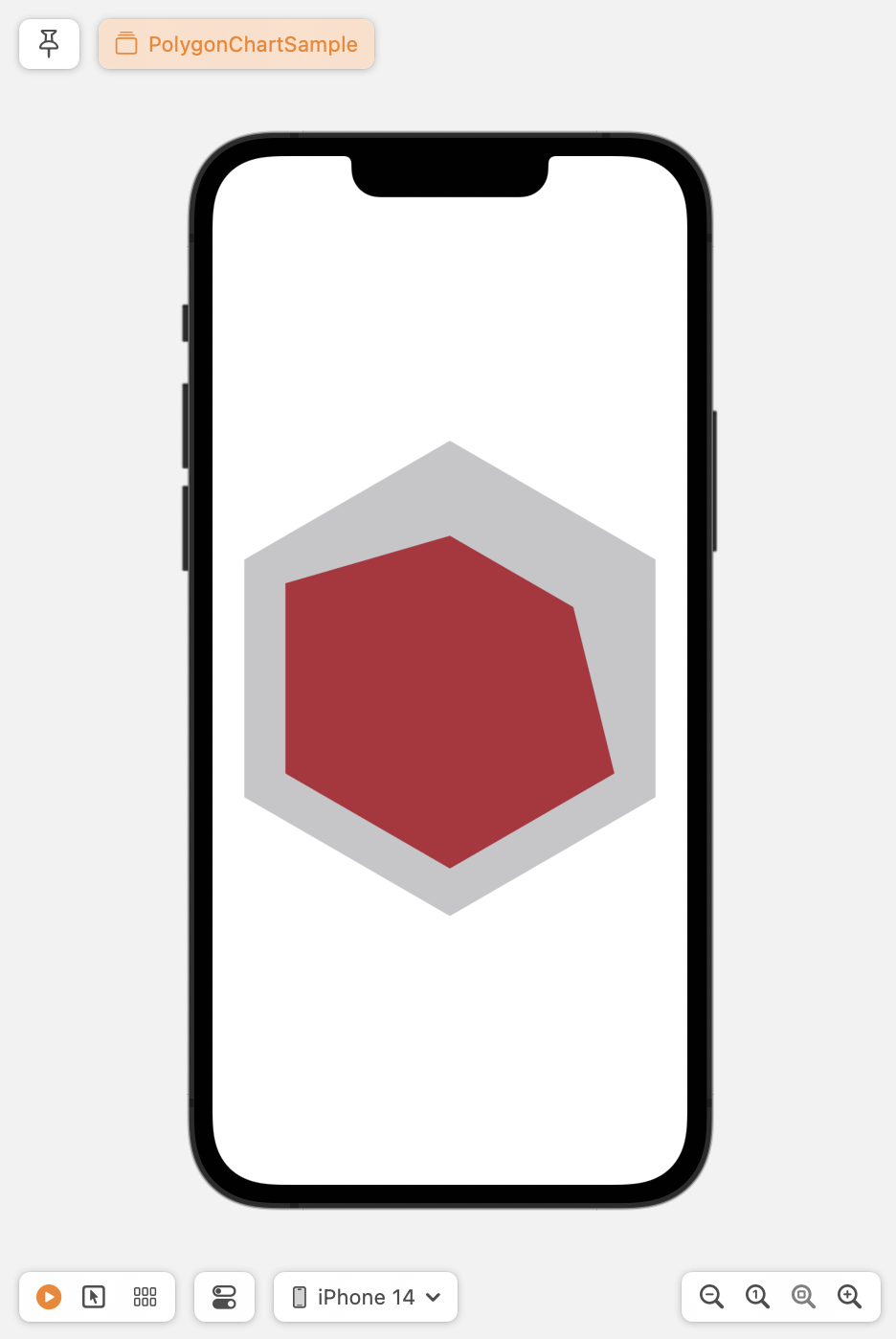아래와 같은 형식의 Radar 차트를 간단하게 만드는 방법을 찾아봤다. Swift 에서도 자체적으로 Chart 를 제공해주고 있지만 아직 아래와 같은 Radar chart 는 없다. 그래서 자체적으로 차트를 만드는 코드를 Shape 를 활용해서 만들어 보았다.