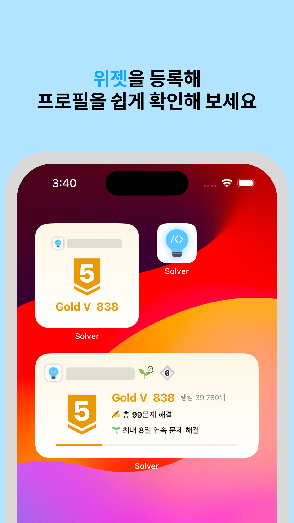 위젯을 등록해 앱을 들어가지 않고도 프로필을 쉽게 확인이 가능하다. (추후 위젯에 새로고침 버튼 넣을 예정)